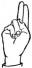 На ћирилици написано БУДИМИР ВЕШКОВАЦ састоји се из 15 слова [?]. Исписано ћириличном једноручном азбуком за глувонеме:
